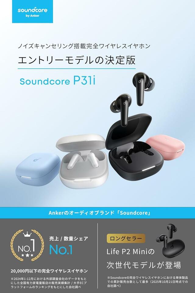 ノイキャンも長時間再生も搭載、Ankerの進化系エントリーモデル「Soundcore P31i」が、発売直後なのに20%オフに!