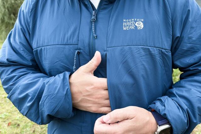 MOUNTAIN HARDWEARの「コアエアシェルウォームフーディ」は、保温と通気のバランスに優れたミドル兼アウター。