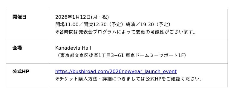 「カードファイト!! ヴァンガード 15th Anniversary ブシロード新春大発表会2026」開催概要