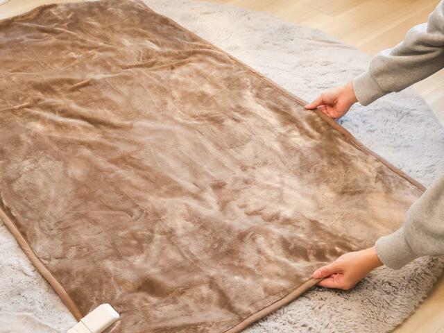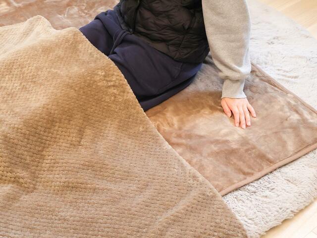 このホットシートをラグの上に敷いて座り、膝にブランケットをかける使い方がお気に入り。