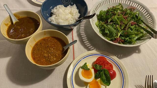 Erick South(またもや登場):青唐辛子ビーフカレー、キーマカレー、白ご飯、半熟卵、フリルレタス+コンビーフ。