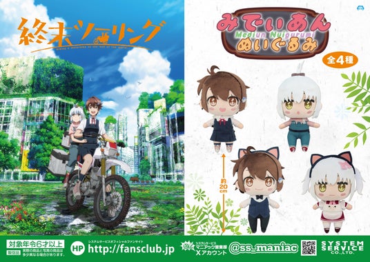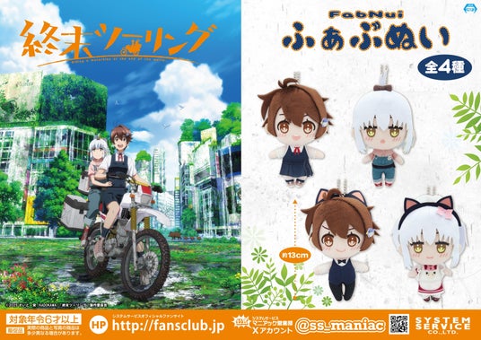 システムサービス株式会社(本社:東京都豊島区、代表取締役社長:田村宗弘)は、「終末ツーリング」のプライズ商品を2025年11月より順次アミューズメント施設にて展開いたします。