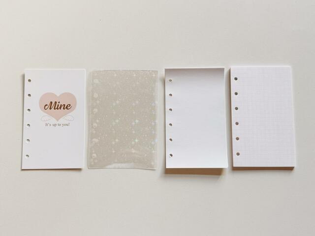 Mineシステム手帳には、台紙・シール台紙・方眼リフィルがセットになっているので、届いたその日からすぐに使いはじめられるのがうれしいポイントです。