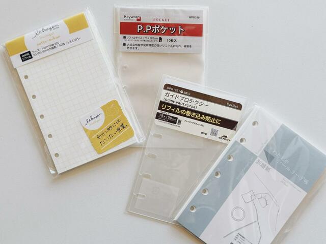 クリアポケットやシール台紙など、よく使いそうなものを準備しました。