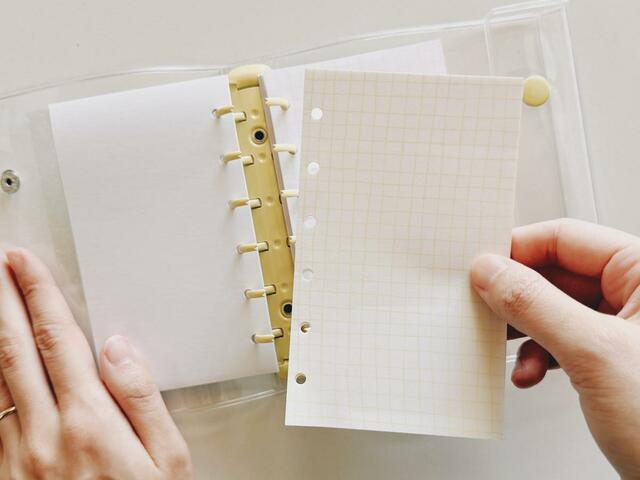 システム手帳とは、リング式のカバーにリフィル(中の用紙)を差し込んで使う手帳のこと。