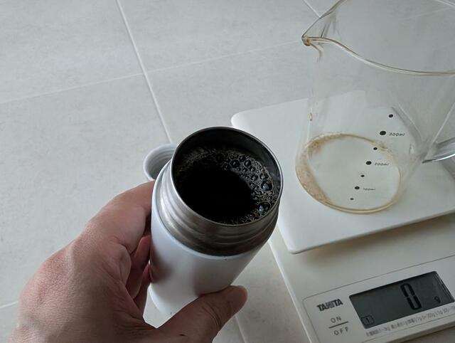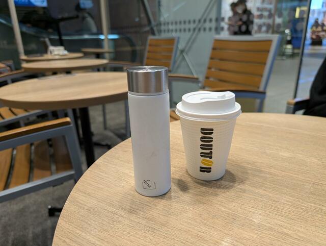 まずは自宅で淹れたコーヒーをボトルに入れて持ち運び、なくなったらお店でコーヒーを購入して入れています。