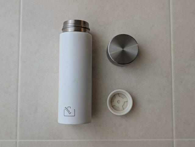 ニトリの「ステンレスボトル プチトル」は、本体、フタ、中栓(氷ストッパー)の、3つのパーツからできています。