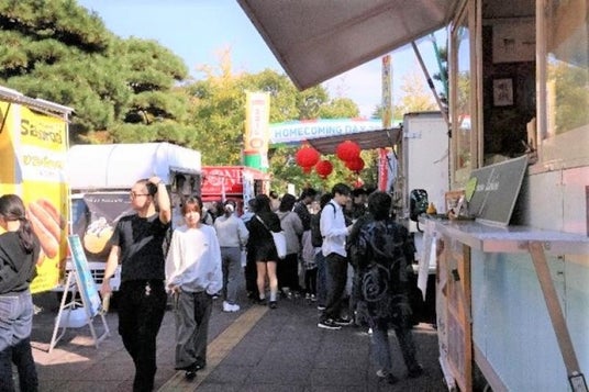 メイン会場周辺では、卒業生や在学生・教職員をはじめ大学にゆかりのある方々による出店や、キッチンカーが並び、在学生による多彩なイベントを開催。各学部等の会場でもさまざまなおもてなしの行事を開催しました。当日は、一時風雨の場面もありましたが、秋晴れの中、多くの方に足を運んでいただき、会場は終始笑顔に包まれていました。