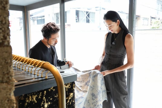 そんな細尾さんにお話を伺うため、冨永愛が西陣織の技術や素材を用いて挑戦し続けたプロダクトやファニチャーが並べられる「HOSOO FLAGSHIP STORE」を訪れ、革新を起こし続ける12代目の細尾真孝さんに技術の秘密、西陣織の未来を聞いた。