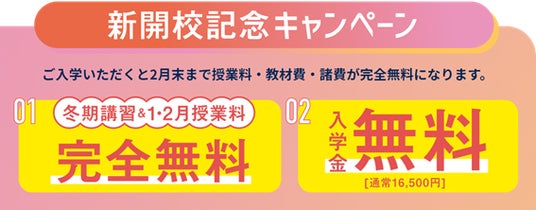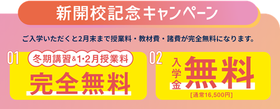 新開校記念キャンペーンとして、創造学園武庫元町校・阪急伊丹校にご入学の方は、2月末まで授業料・教材費・諸費が完全無料になります。