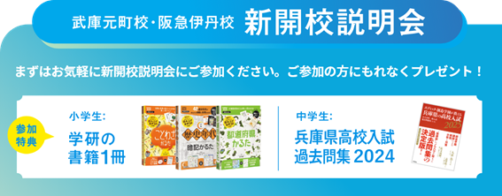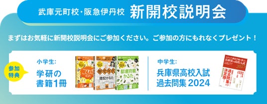 株式会社 学研ホールディングス(東京・品川/代表取締役社長:宮原博昭)のグループ会社、株式会社 創造学園(兵庫・神戸/代表取締役社長:中島竜也)は、2025年12月に尼崎市と伊丹市に新教室「武庫元町校」「阪急伊丹校」を開校いたします。地域に根ざした学習塾として、トップ校を目指す小・中学生の学力を育成。さらに仲間と競い合い、自ら考え抜く経験を通して、未来を生き抜く力を育みます。このたび、開校に先立ち、入塾希望者を対象とした説明会を開催いたします。