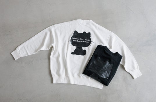 フロント脇にさりげなく同色のブランドロゴを刺繍したスウェットプルオーバー。ハローキティのシルエットを大胆にバックプリントし、LFM(U)のコンセプトロゴ“Timeless And Classic, With Some Humor.”を重ねた遊び心あふれるデザインがポイントです。LFM(U)らしくモノトーンな色合いで大人が着たいキャラクタースウェットに仕上げました。