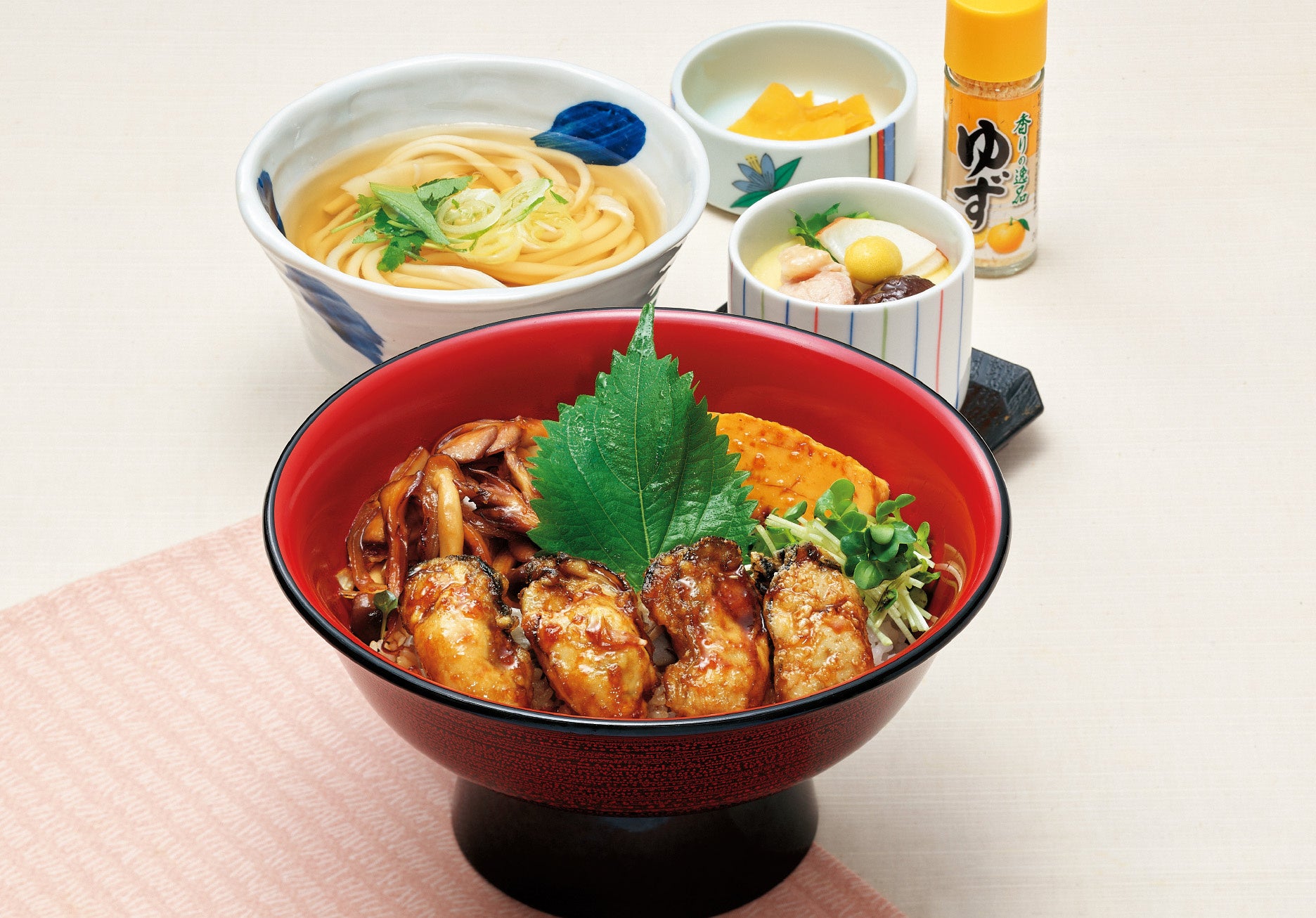 『牡蠣の照り焼き丼』うどん・茶わん蒸し付
