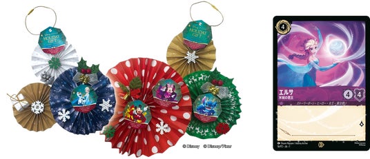 ディズニー・ピクサー作品のキャラクターをデザインしたオリジナルリースをつくるワークショップを開催いたします。好きな柄を選んでペーパーファンをつくって、キャラクターやクリスマスモチーフで飾り付け!ご自宅でリースやツリーのオーナメントとしてお楽しみください。さらに、参加者全員にディズニーロルカナ プロモーションカード《エルサ-氷城の君主》サインボックスver.もプレゼントいたします。