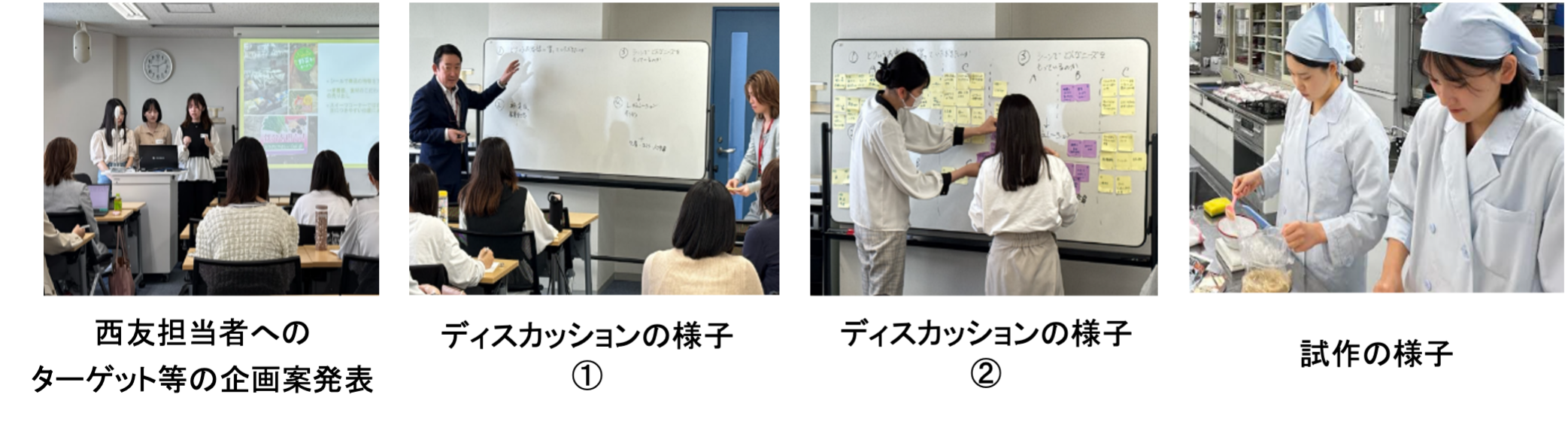 8月には、学生から両社へ商品提案を行い、レシピの商品化に向けて、食材の配色や量、容器の色など細部まで意見交換を繰り返し、商品開発の一連のプロセスに取り組むことができました。