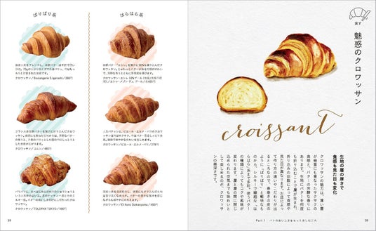 イラストを手掛けるのは、クレパスを使った食べ物のイラストで人気のmomoさん(Instagram @momonoearkielama)。目で見て楽しい、食べておいしいパンの世界を、グラフィカルな紙面でお届けします。