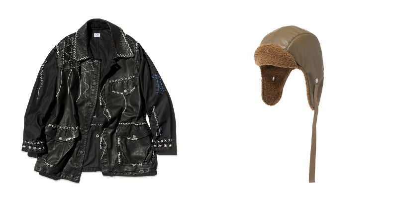 3F C.P. COMPANY 「LEATHER JACKET SASHIKO」880,000円/2F KIJIMA TAKAYUKI「FAUX LEATHER & BOA AVIATOR CAP」 25,300円