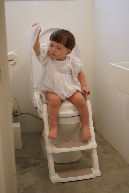 足がしっかり届く姿勢で、踏ん張りやすく、スムーズな排便をサポートすることで、トイレを「できた!」の体験の場に変え、子どもの自信を育みます。