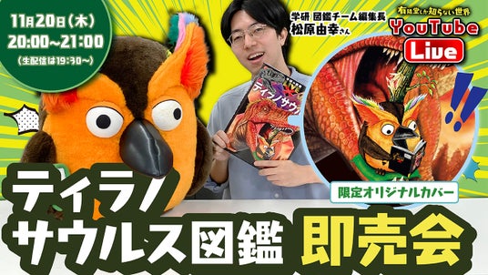 株式会社有隣堂(本社:神奈川県横浜市 代表取締役 社長執行役員:松信健太郎)が、毎週火曜に配信している公式YouTubeチャンネル「有隣堂しか知らない世界」では、2025年11月18日(火)配信回にて、株式会社Gakken(本社:東京都品川区 代表取締役社長:南條達也)が発行する『学研の図鑑LIVEエクストリーム ティラノサウルス』を特集します。