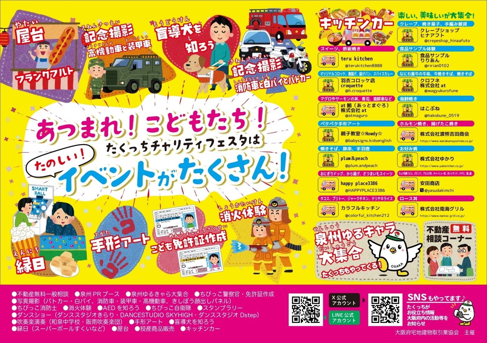 一般社団法人大阪府宅地建物取引業協会(所在地:大阪市中央区、会長 山本 清孝(以下、大阪宅建と言います。))は、2025年11月30日(日)に大型チャリティーイベント「第3回たくっちチャリティフェスタ!」を浪切ホール祭りの広場・岸和田カンカンベイサイドモールにて開催します。