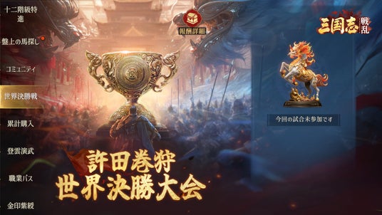 「許田巻狩世界決勝大会」は、『三国志:戦乱』の中でも年間最大規模のクロスサーバー大会です。各地域リーグの上位16連盟が出場資格を獲得し、1連盟あたり最大25名が参戦。総勢1,000名を超える規模の白熱した戦略バトルが繰り広げられます。