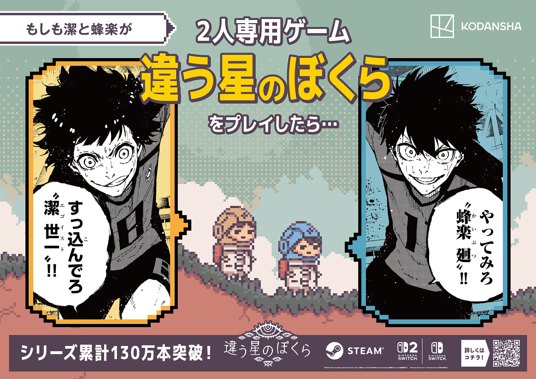 ・『ブルーロック』より、「潔 世一」と「蜂楽 廻」 × 『違う星のぼくら』