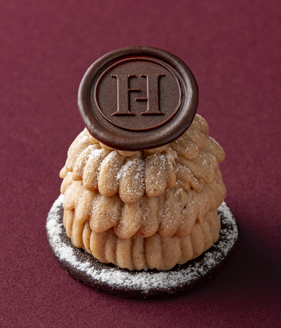フランス産栗のモンブランHer lip toのロゴをあしらったシーリングチョコレートがワンポイントのモンブラン。フランス産の栗を使用したマロンクリームの中に、ラム酒で香りづけをした生クリームと栗の渋皮煮を忍ばせて、芳醇な香りが広がるクラシカルな味わいに。