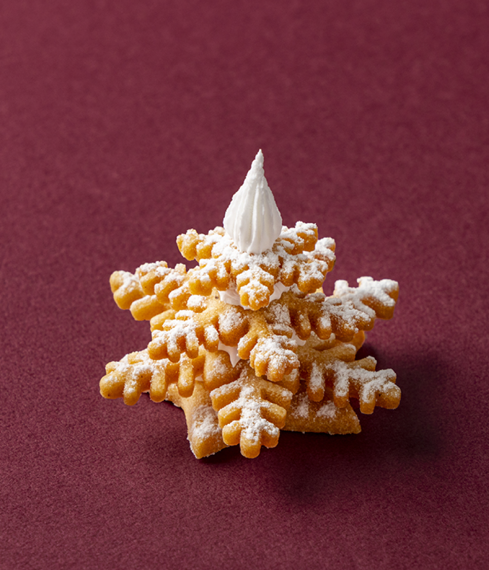 ジンジャークッキーツリー雪の結晶を模ったジンジャーブレッドを積み重ねてクリスマスツリーに見立てた、繊細な佇まいが美しいクッキー。ジンジャーの風味を効かせ、見た目でも心躍るホリデーシーズンをご堪能いただける一品に。