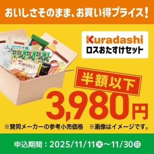 「ロスおたすけセット」は、2025年4月以降定期的にファミマオンラインで販売し、毎回、お客さまから大変ご好評をいただいております。これまでにお客さまにお買い求めいただいた商品の合計から、約4.7トンの食品ロス削減につなげることができました(※株式会社クラダシ調べ)。皆さまのご協力に感謝を申し上げます。