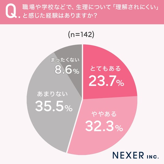 続いて、職場や学校などで、生理について「理解されにくい」と感じた経験があるかを聞いてみました。