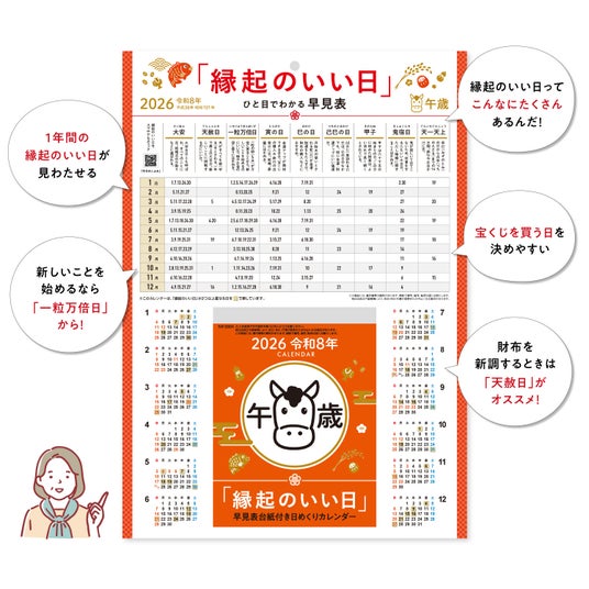 一年間の「縁起のいい日」がひと目でわかる、開運日めくりカレンダーを新発売