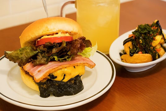 東村山の新ご当地グルメの『黒カレー』と、地元企業「遠藤製餡」による、市内で採れたさつまいもを使用した『おさつあん』をサンドした本格バーガーです。東村山を代表するご当地グルメ『黒焼きそば』の味ポテトに、市内の農家で採れた「多摩湖梨」を使用した『多摩湖梨ジャスミンティ』を添えています。6年1組の子どもたちと『洋食レストラン kitchen KEIJI』が自信を持ってお届けする、“東村山のおいしい!”が100%詰まった一品です!
