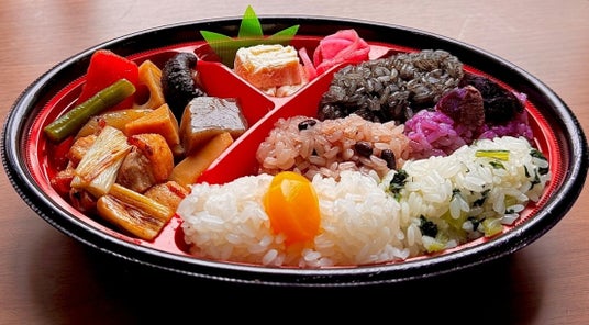 緑は「ひがっしー」、赤は「よしくん」など、街の人気キャラクターたちをイメージした五色のおこわが、かわいくお弁当の中に勢揃い。それぞれの色や味には、キャラクターの個性や東村山の名産品をモチーフにした工夫がたっぷり詰まっています。