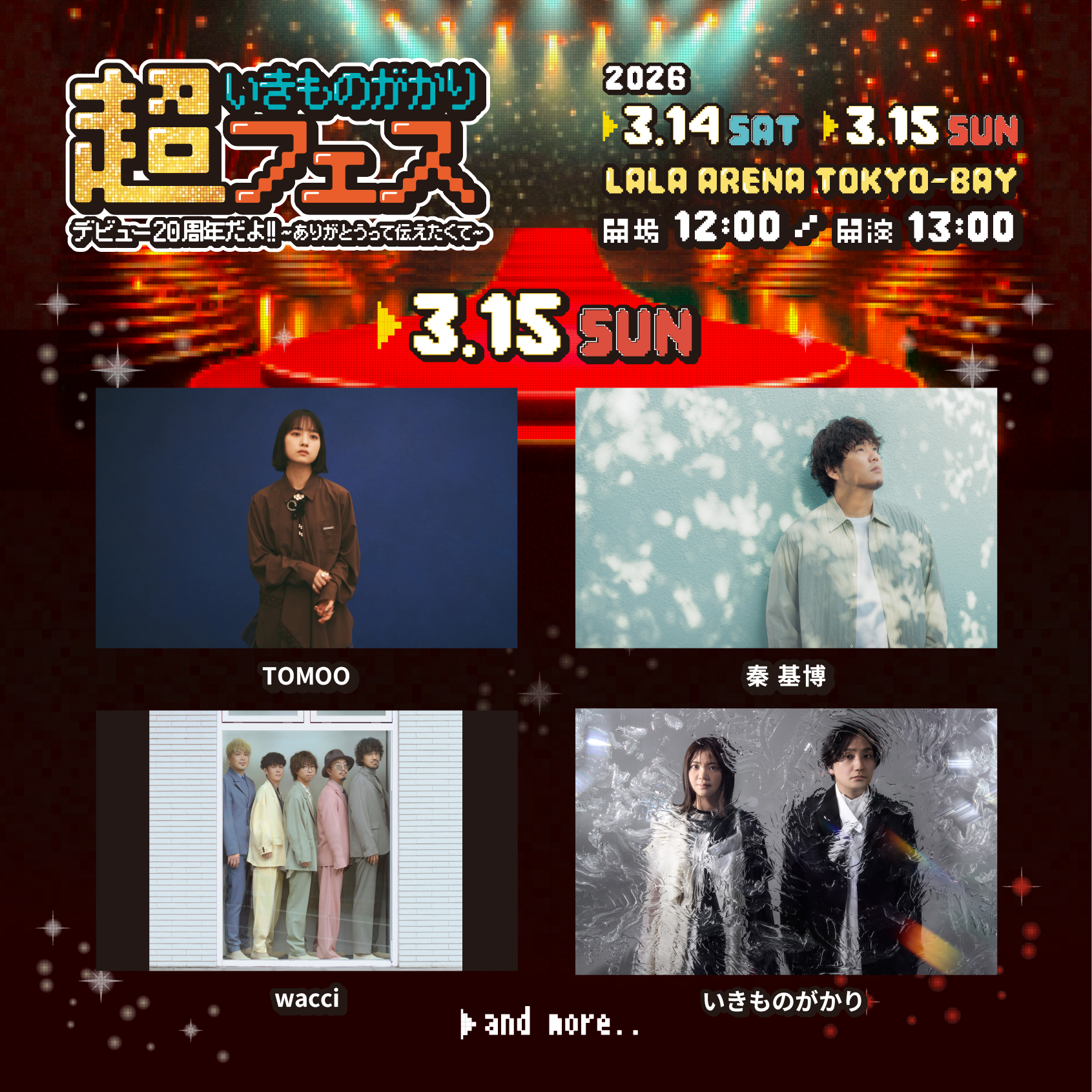 また、今回2日目の15日(日)は、いきものがかりが2006年3月15日に「SAKURA」でメジャーデビューしてから20周年目を迎える、いきものがかりにとっても、ファンの皆様にとっても大切な1日です!