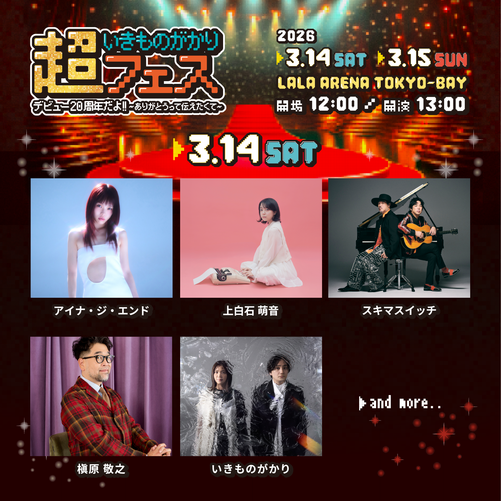 14日(土) いきものがかり、アイナ・ジ・エンド、上白石萌音、スキマスイッチ、槇原敬之