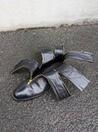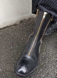 障がいの有無、性別、年齢、国籍などは、自分にあったデザインや機能を持つ服を選ぶ上で「垣根」になることがあります。これまで一般社団法人日本福祉医療ファッション協会は、そうした垣根に関係なく、すべての人がアクセスしやすく、着脱が簡単で、だれもがオシャレを楽しめる服を作ってきました。たとえば、身体に麻痺がある方々のための巻きスカート型のボトムス(bottom’all /写真A・B)、手首からわき腹までジッパーで開閉できるジャケット(写真C)、車椅子ユーザーに配慮したジッパーが多数あるブーツ(バナナブーツ/写真D・E)などを開発し、2022年9月にはパリ・ファッションウィークで車椅子ユーザーのみのファッションショーを開催いたしました。この取り組みにより、その後、多くの車椅子ユーザーがニューヨークやミラノのファッションウィークに積極的に参加するようになり、障がいの有無に関わらず、だれもがオシャレを楽しむ社会に近づきつつあります。