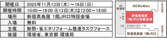 その取り組みの一環として、暮らしの快適性を見つめ直す体験型イベント『おうちの快適展 ~不快は、断熱で快適にできる~』を、2025年11月13日(木)~16日(日)、新宿高島屋 1階JR口特設会場で開催します。リフォームや断熱関連のニーズが顕在化していない層、特に戸建て所有者およびファミリー層に向けて、断熱リフォームへの気づきと必要性の理解を促進してもらうための、コンテンツを出展します。