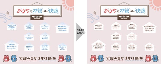会場では、断熱の仕組みや効果をわかりやすく紹介する展示のほか、猫のキャラクター「あったかいねぇこ・すずしいにゃ~こ」と一緒に楽しめるコンテンツもご用意。「今の家でもできる断熱リフォーム」がわかる内容になっています。