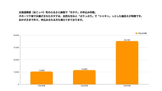 年々、ふるさと納税においても申込み件数が増えており、興部町のホタテを口にしている方も多くなってきている状況ではございますが、このキャンペーンを機に「また食べたい」「食べてみたい」と思っていただける方にぜひご参加いただきたいと思います。