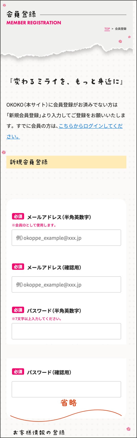 「ログイン情報」と「お客様情報」をご入力いただきます。