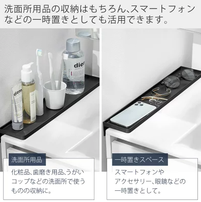 洗面台横のデッドスペースを活用してスマホの一時置きや小物置き場に。山崎実業の「洗面台横隙間トレー」がポイント5倍