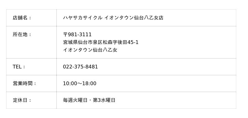 ハヤサカサイクルに新たな自転車の拠点、「イオンタウン仙台八乙女店」グランドオープンのお知らせ