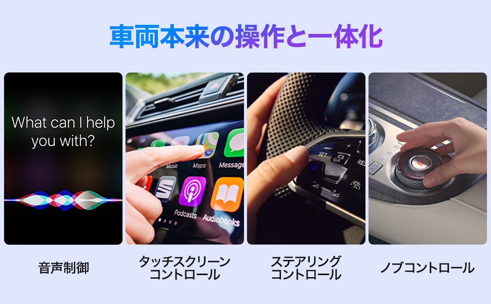 複雑な設定や配線工事は不要。USBケーブルをCarPlay対応ナビに差し込むだけですぐに起動します。配線も少なく、車内がごちゃついてしまう心配もありません。