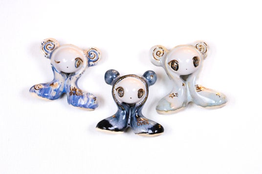 《死なない雑魚敵》H65×W65×D40mm / 全て陶、釉薬、金彩 / 2025