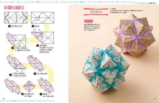 作り方を折り図で丁寧に紹介。初めてでも取り組みやすい内容です。