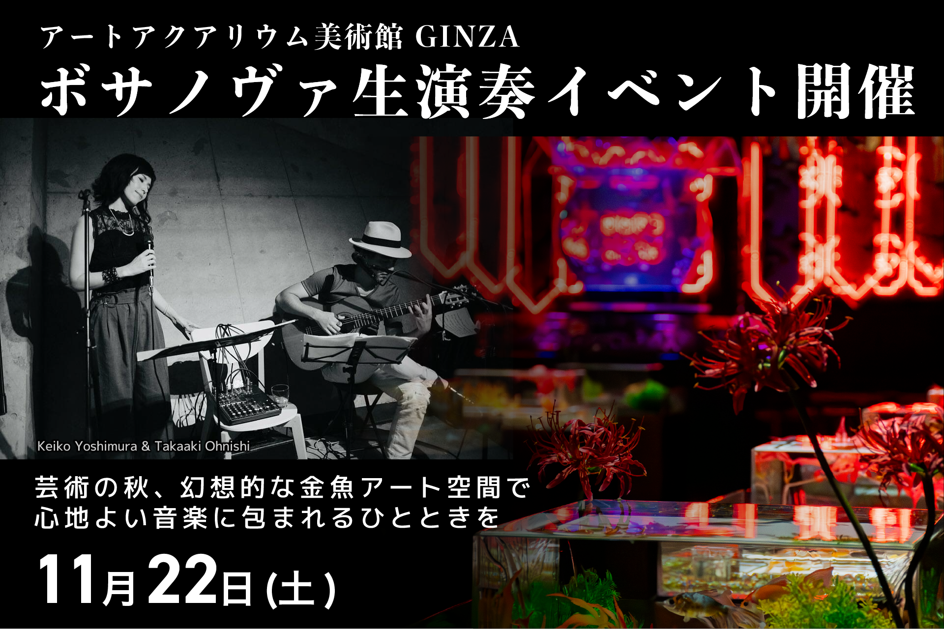 アートアクアリウム美術館 GINZA(所在地/東京都中央区銀座三越内)では、芸術の秋を彩る特別イベントとして、館内にてボサノヴァ音楽の生演奏をお楽しみいただける「アートアクアリウム×ボサノヴァ」を11月22日(土)に実施いたします。