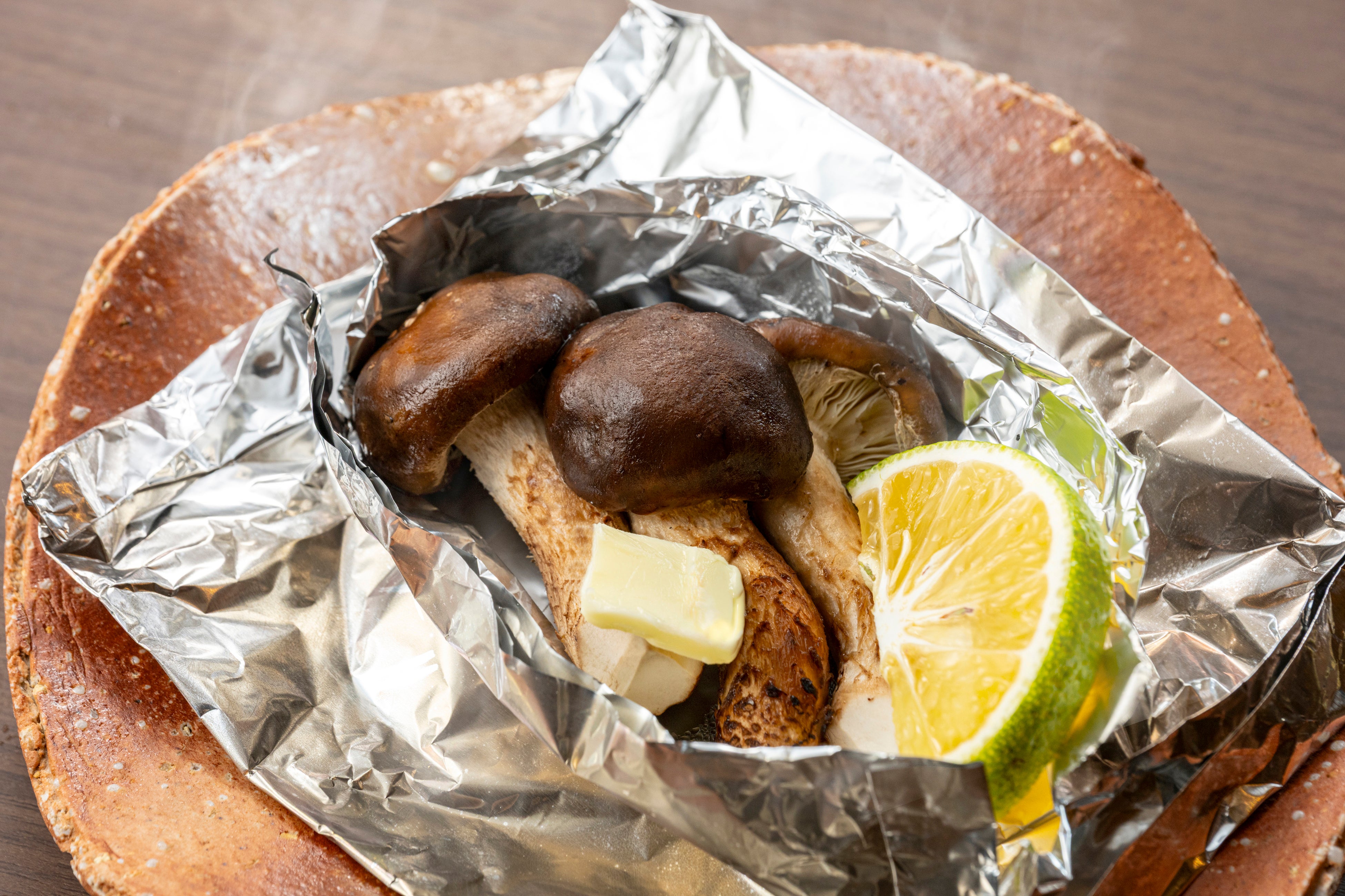 「松きのこ」の風味ダイレクトに感じられる珠玉1品です。「松きのこ」の軸はシャキッと、傘はプリっとした食感で部位ごとに変わる食感を楽しむことができます。ほんのり塩味の利いたバターを乗せお店秘伝の醤油だしをさっとかけ回ししていただきます。