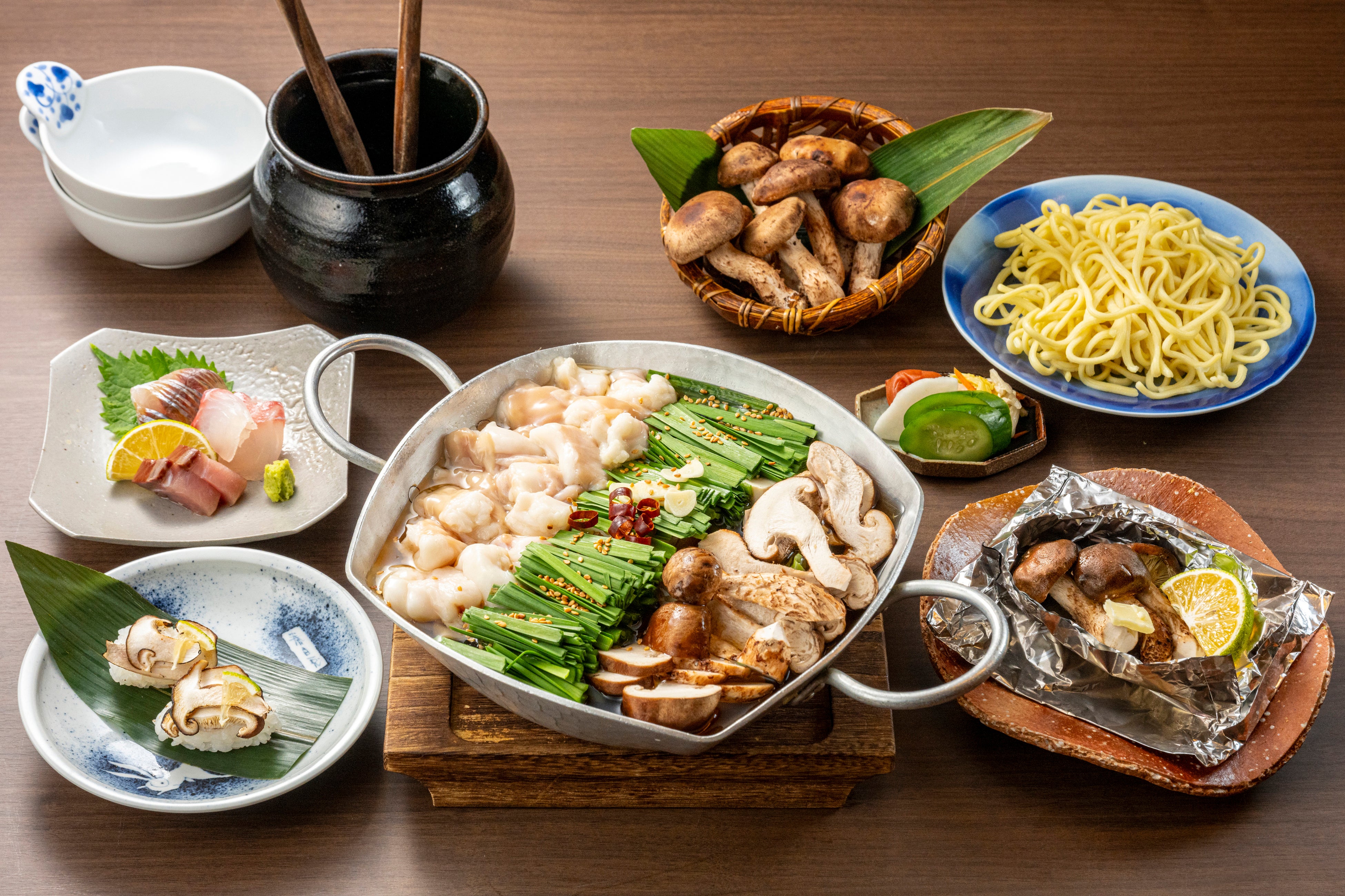 芳醇な香りと食感が際立つ「松きのこ」と、プルプルの和牛の新鮮なもつが織りなす、これまでにない新しいもつ鍋です。