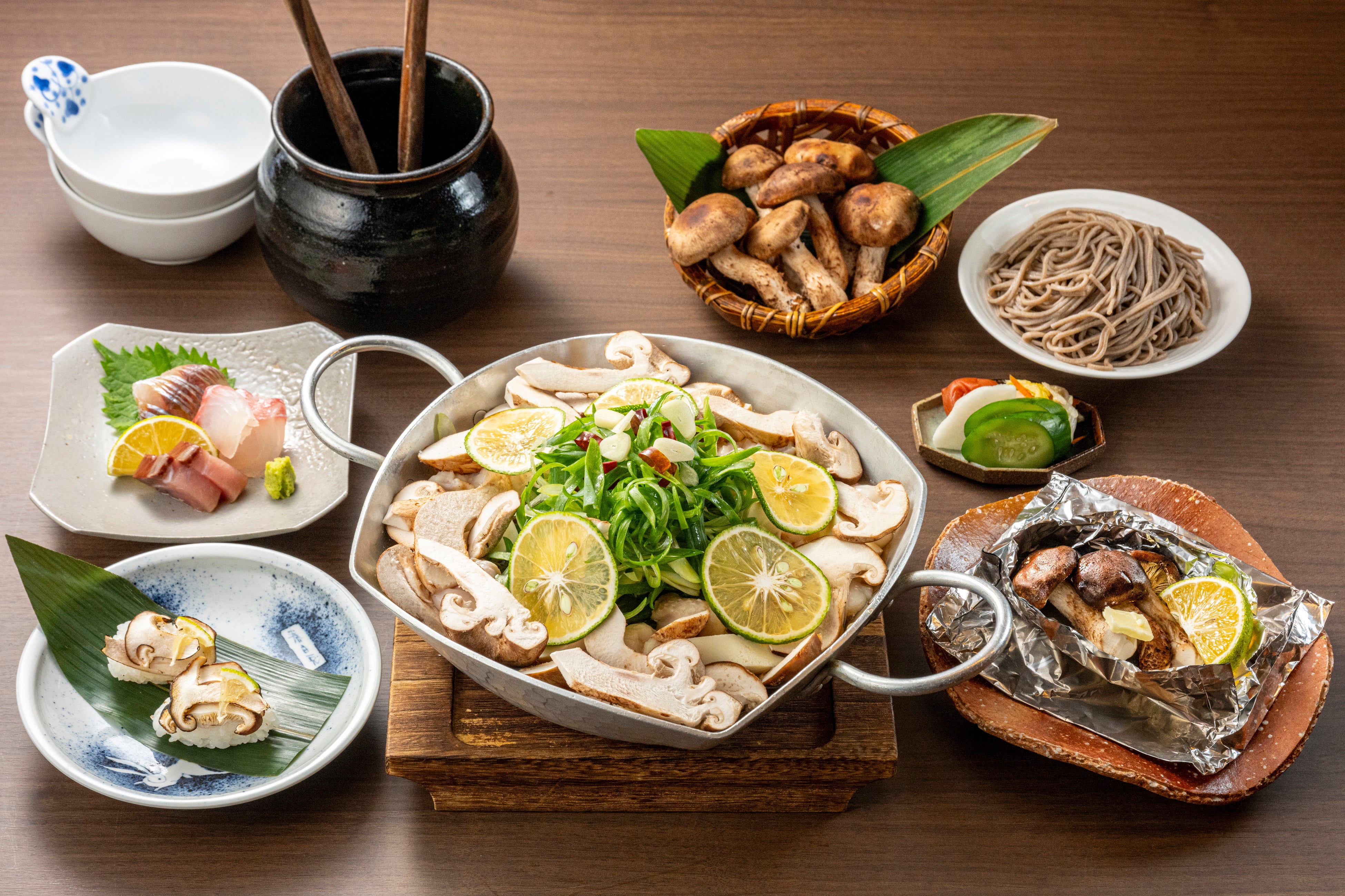 福岡市博多区住吉にある日本料理店「住吉日本料理 Koga」では、この特別なきのこを堪能できるランチ限定の鍋セットを4種類ご用意しました。「松きのこ」を贅沢に使用しボリューム満点の食べ応えのあるお鍋に仕上げています。また鍋に使用するスープ類も「松きのこ」からお出汁を取るこだわり。やさしい風味、芳醇な香りと深みが見事に調和しています。また全セット共通で、「松きのこ」のバター焼きと握り寿司、自家製香の物、各種シメをご用意しております。