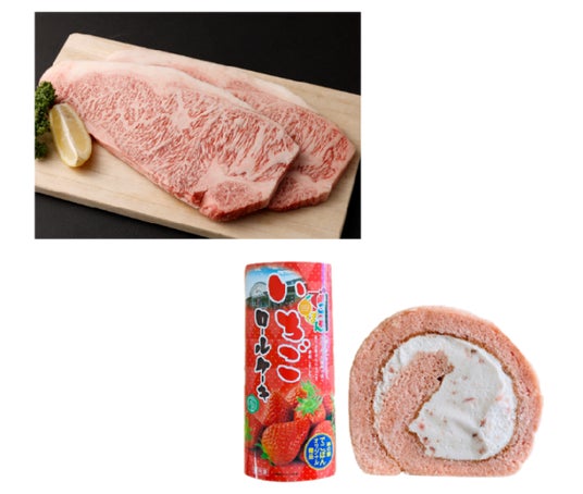 【コンプリート賞】[特産品セット] 芦北牛(サーロインステーキ200g×2枚)、いちごロールケーキ
